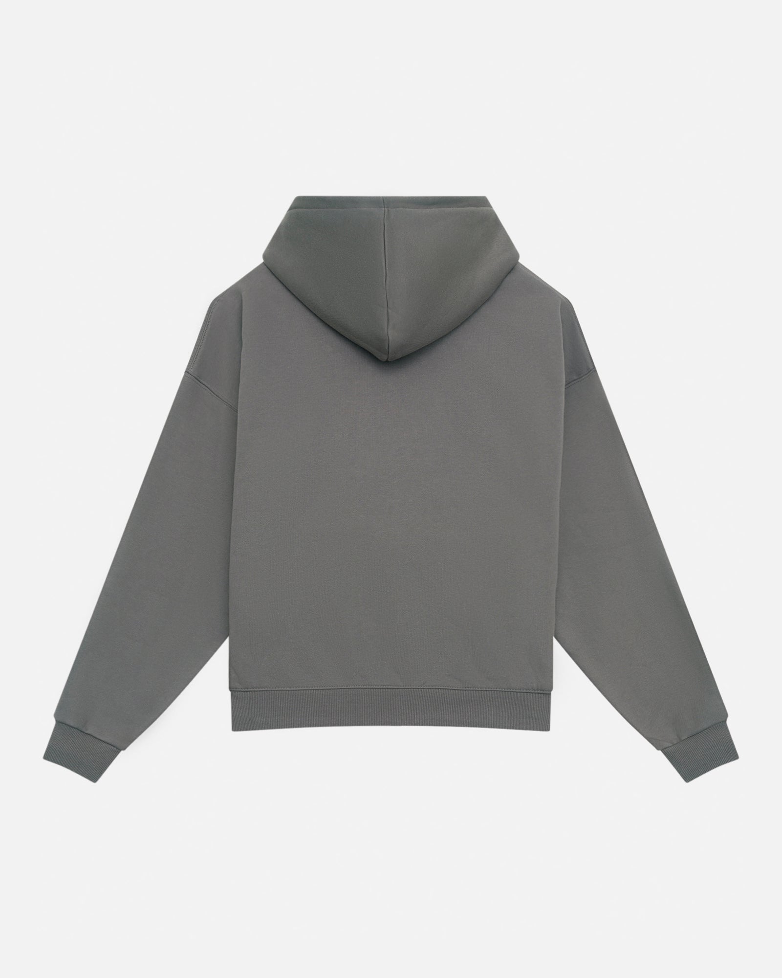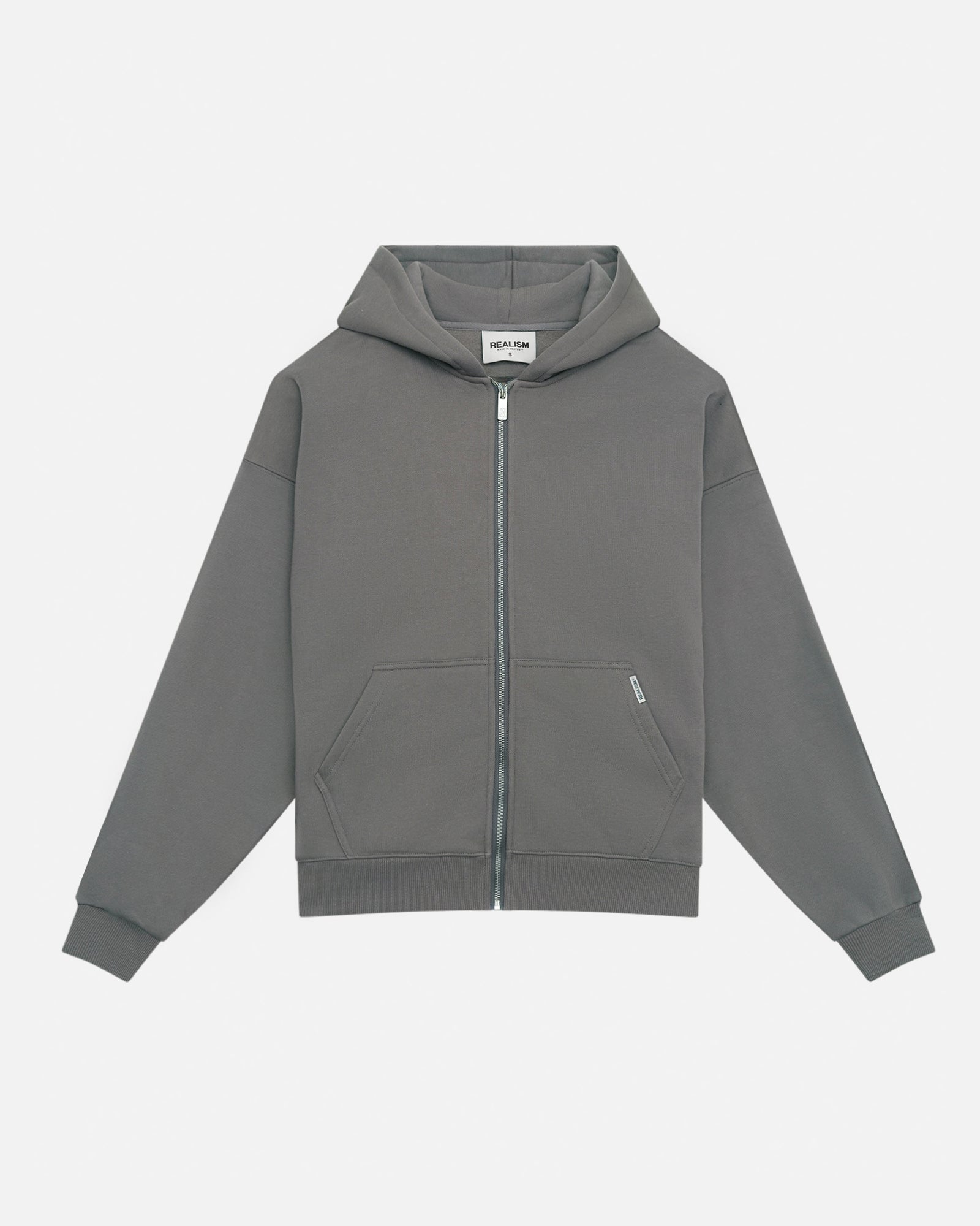 Crafted for everyday essentials, the Core Basics Zip Hoodie in Cool Grey is a refined take on minimal streetwear. True to size with a boxy fit, this piece is built using our signature 350 GSM fleece. Soft, structured, and made for daily comfort. It features a custom metal logo clamp on the kangaroo pocket and a clean, logo-free finish throughout for an understated look.