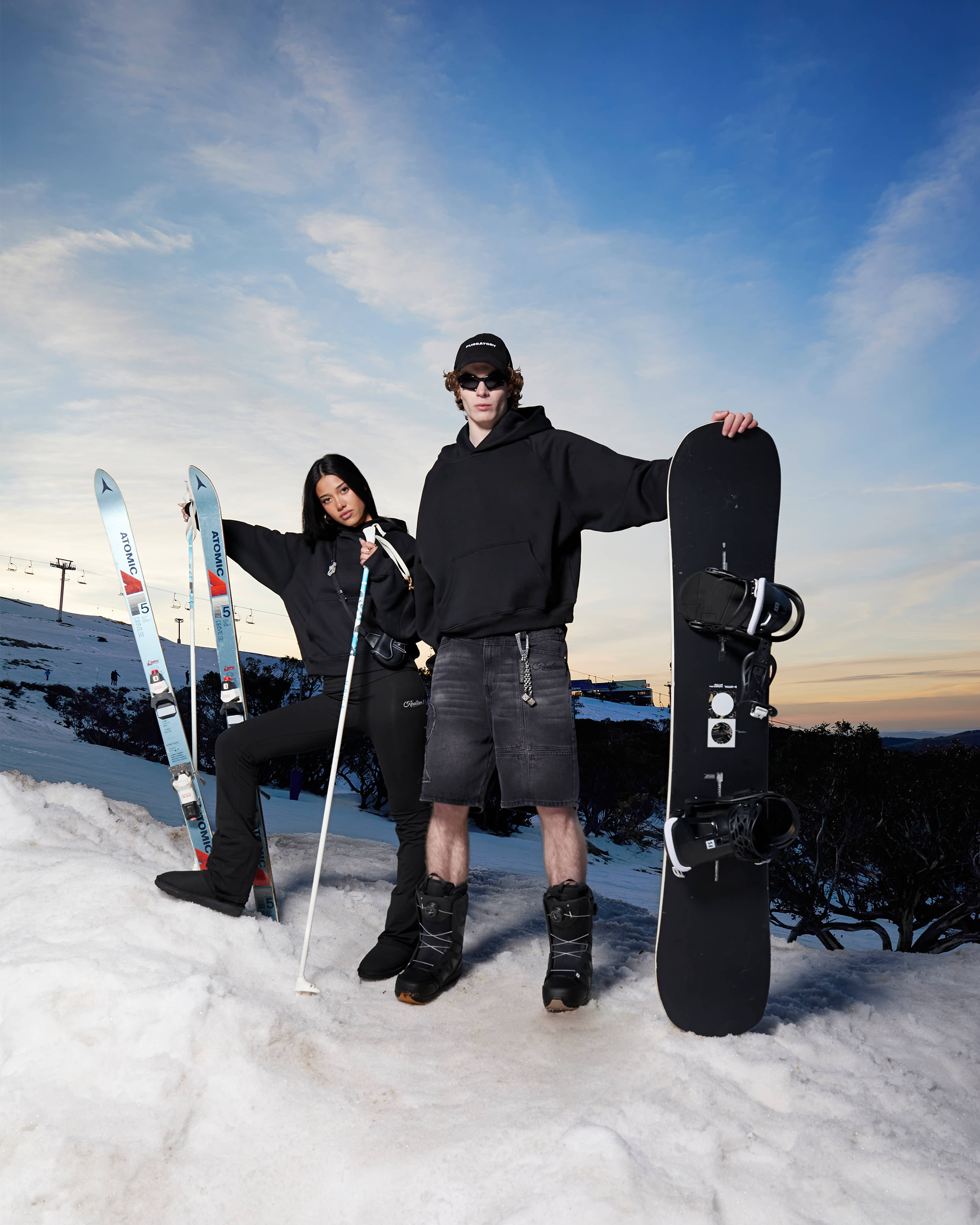 Dominic is 191cm tall and wears an XL, Xanthe is 165cm tall wears a S.
