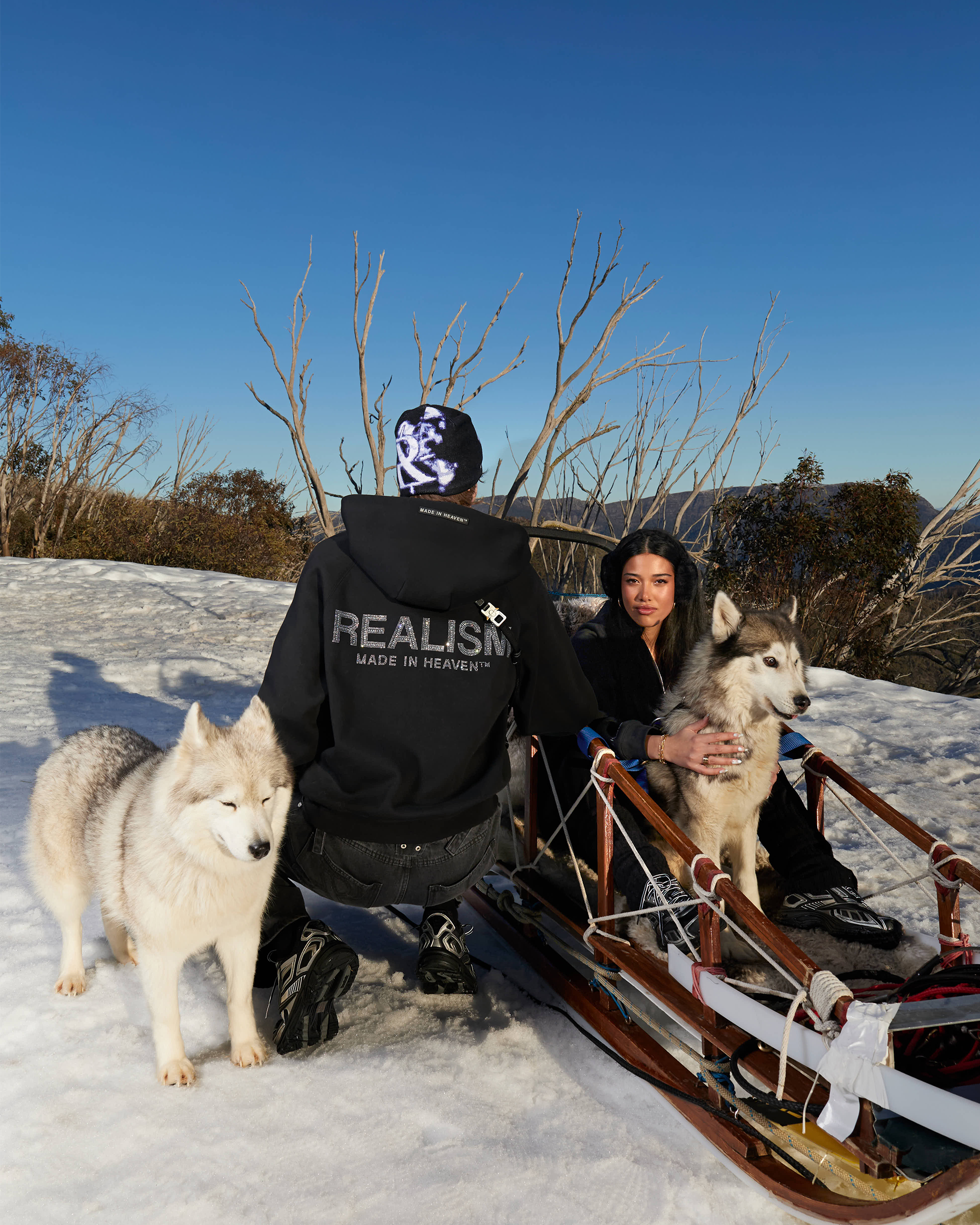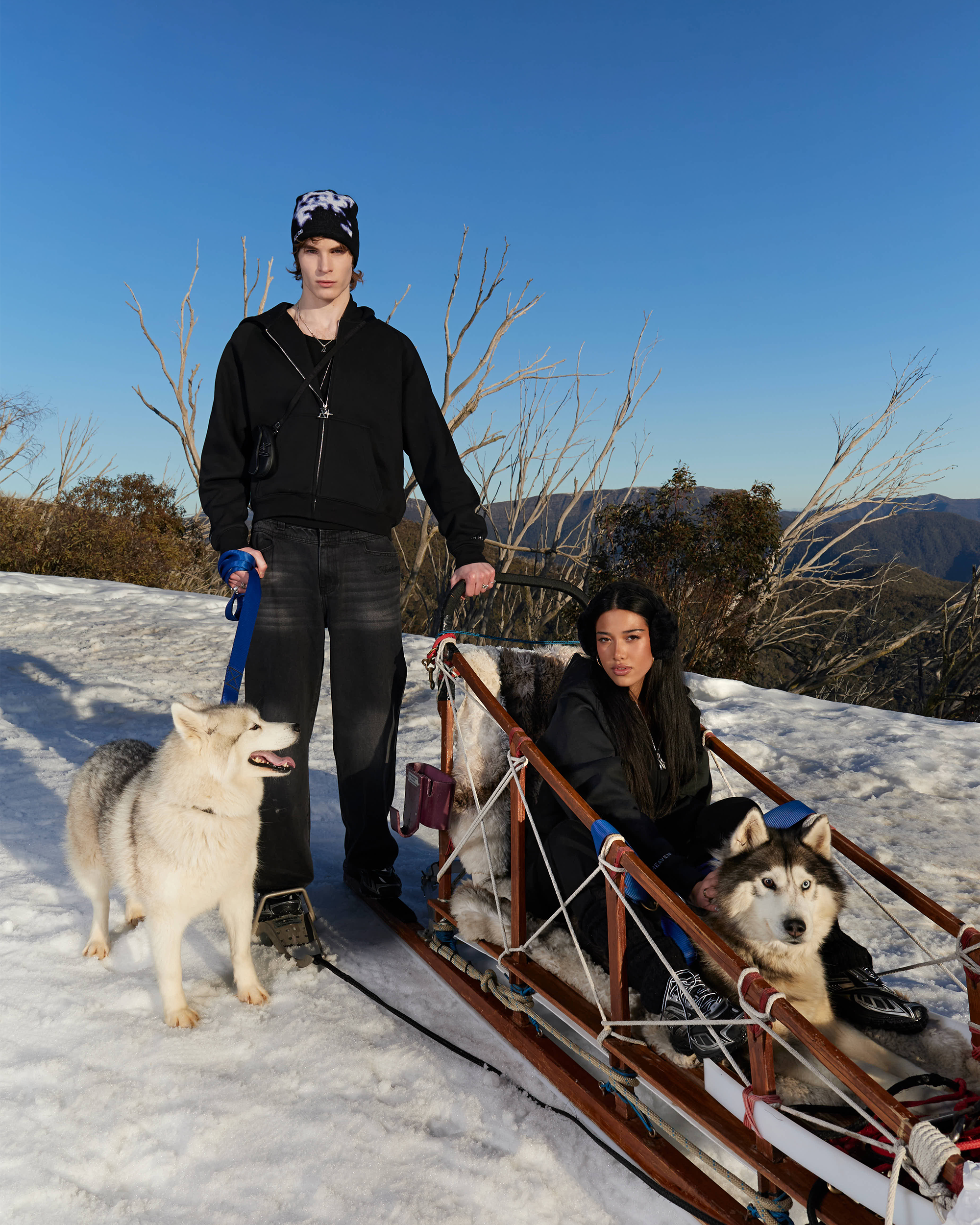 Dominic is 191cm tall and wears an XL, Xanthe is 165cm tall wears a S.