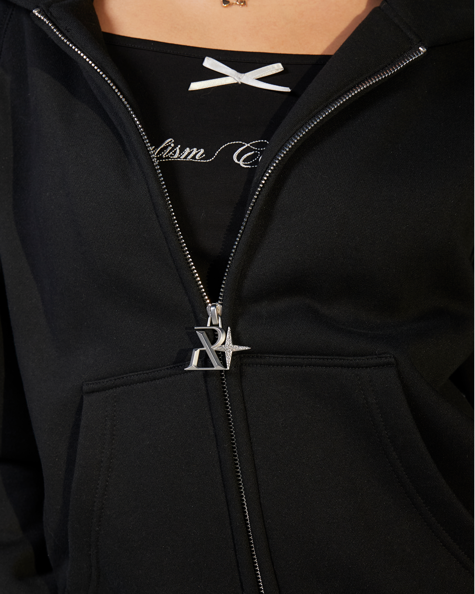 GLIMMER LOGO ZIP HOODIE BLACK