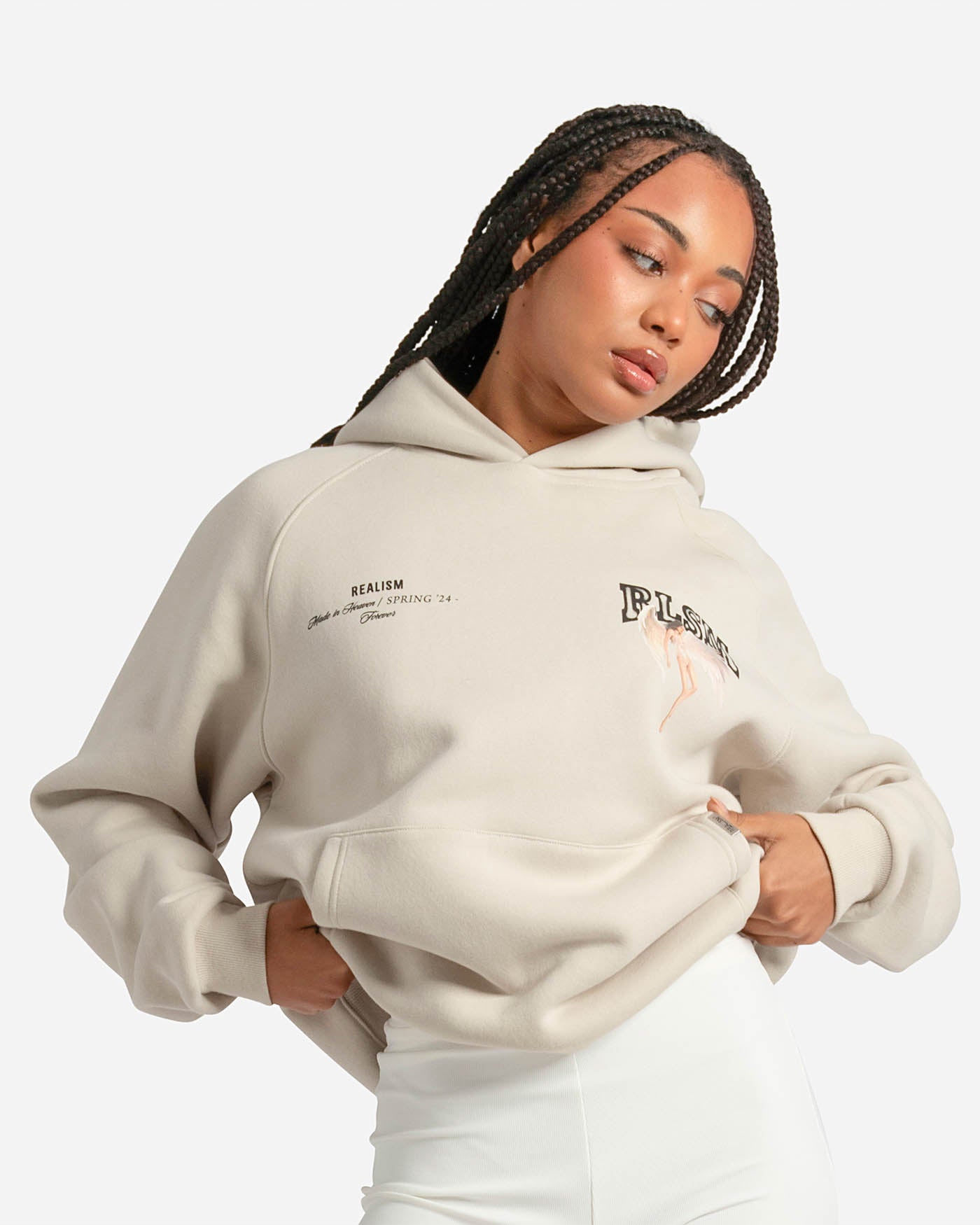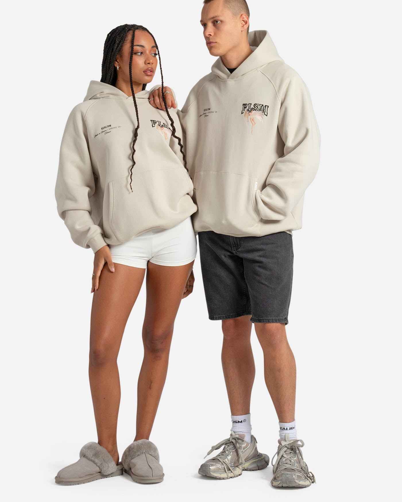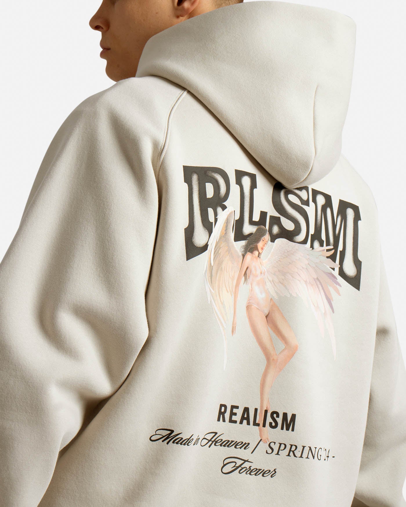 The staple hoodie is refreshed with an elevated signature from our FW24 Guardian Collection. Made with our signature comfy fleece in a oversized Wheat-coloured guise, this hoodie features metal embellishments and graphic prints on both the front and back. Raglan sleeves, kangaroo pocket and dual layered hood finish a unique and composed design that captures the essence of the Guardian collection.