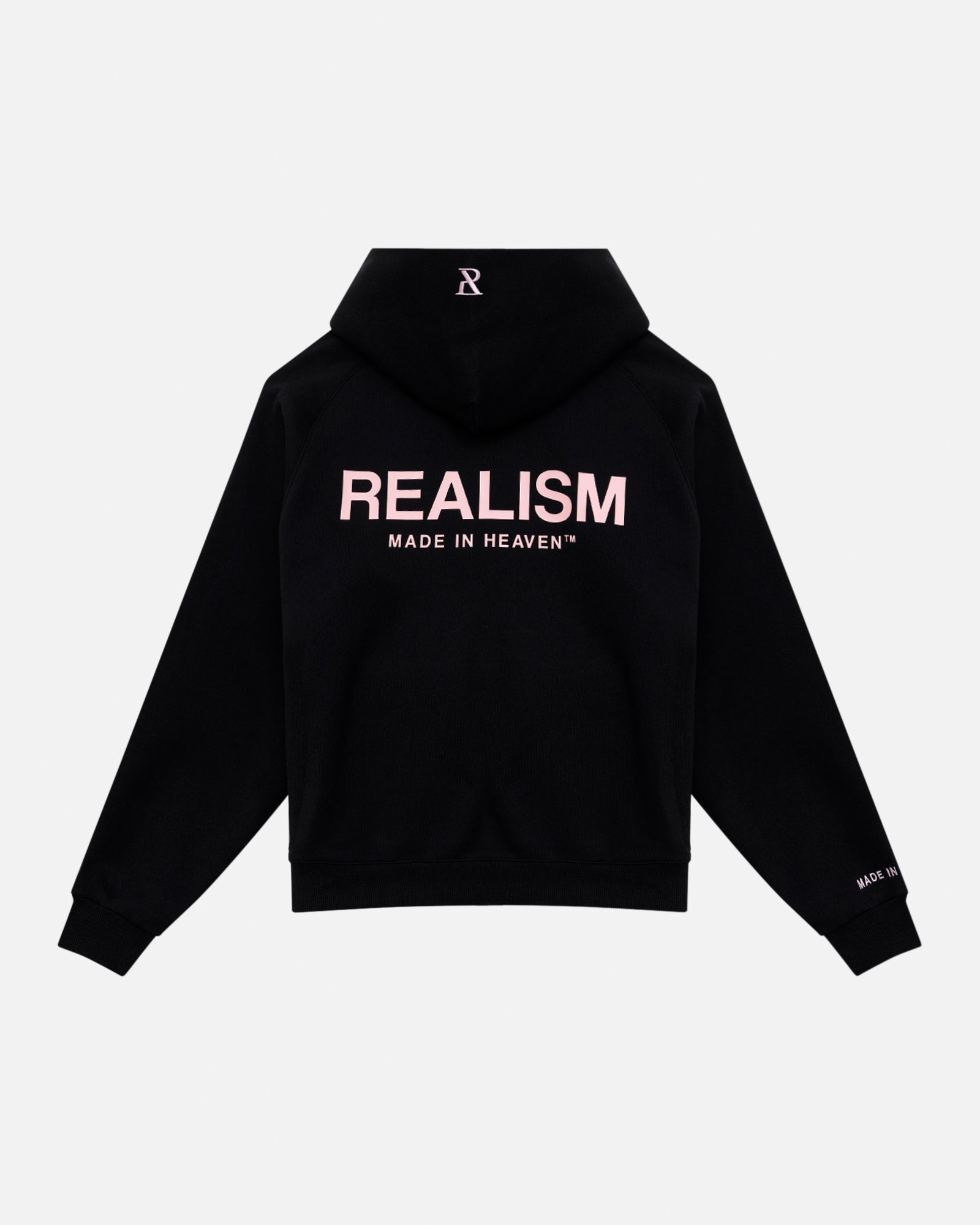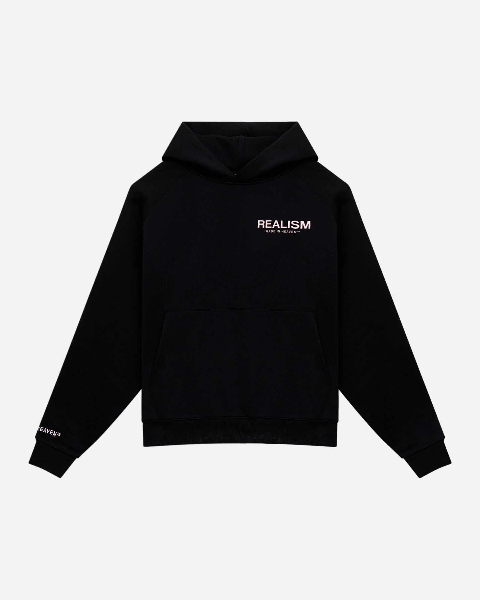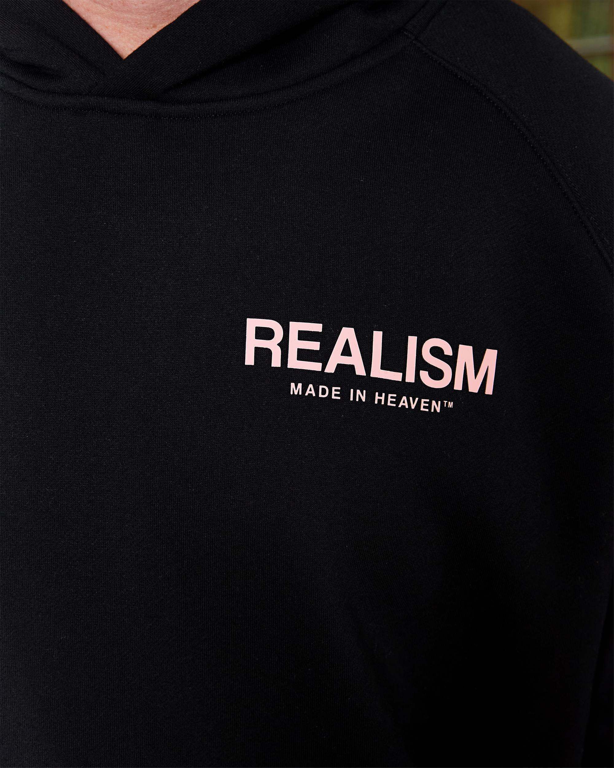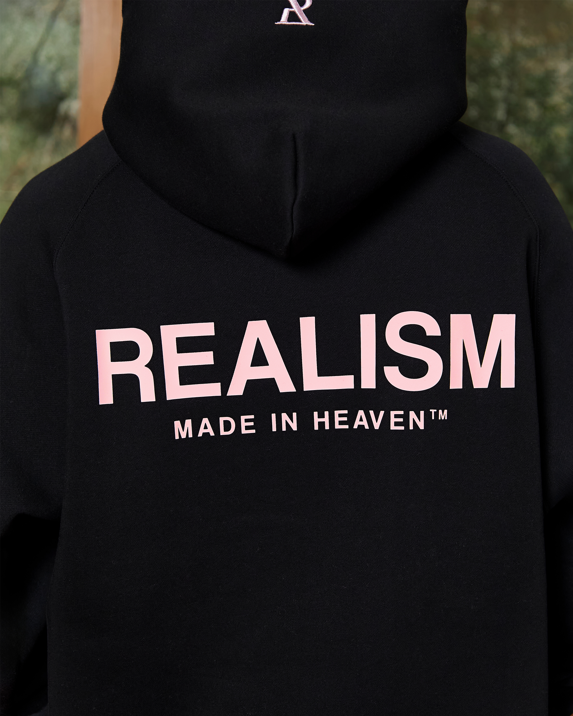 The ultimate hoodie. Premium, comfortable, and designed with purpose. Featuring Realism's signature 350 gsm fleece crafted into a raglan, oversized silhouette, this hoodie is accentuated with 3-dimensional silicone applique logos on the front and back. An embroidered "R" logo on the hood and a "Made in Heaven" motif on the right sleeve complete this iconic design.