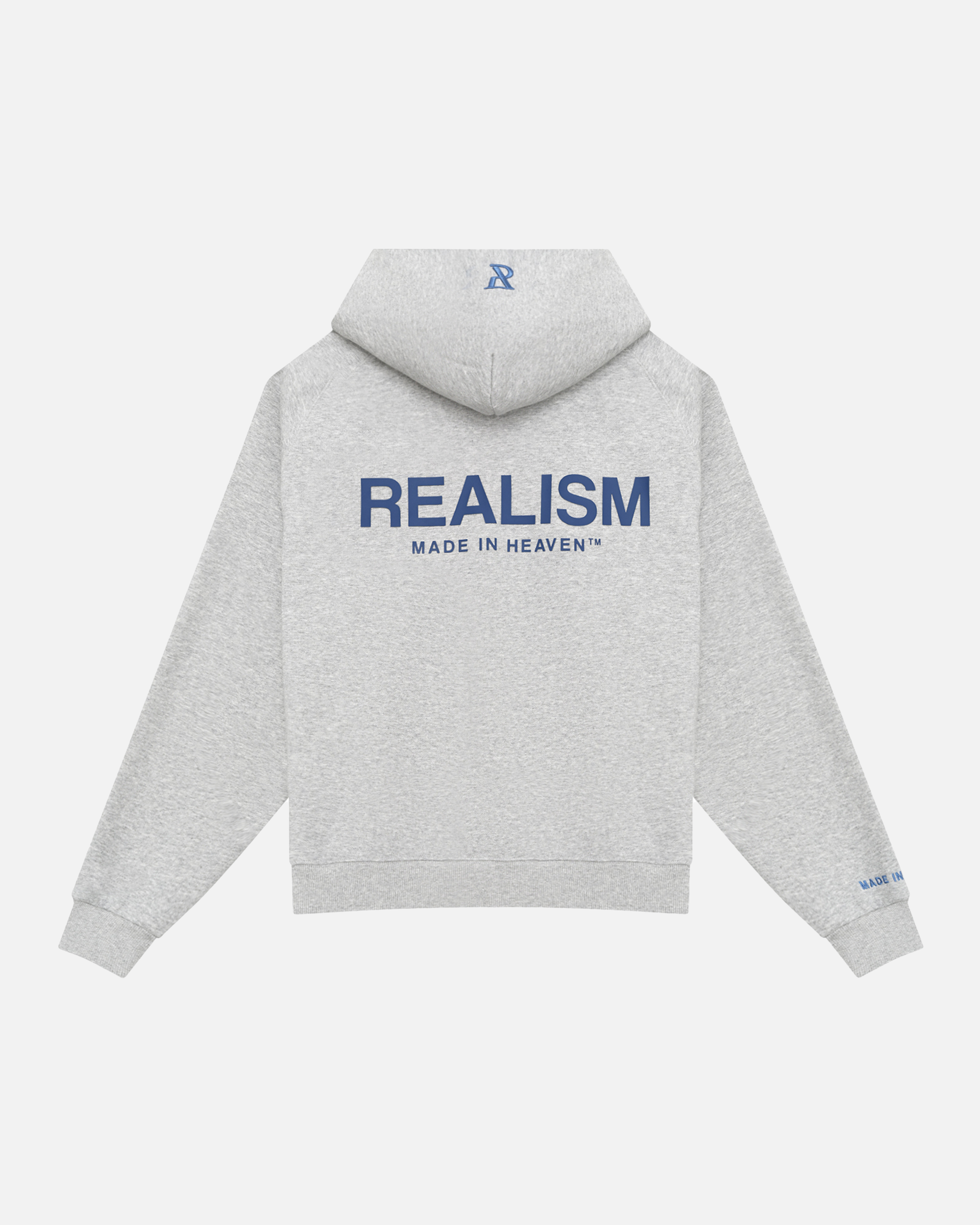 The ultimate hoodie. Premium, comfortable, and designed with purpose. Featuring Realism's signature 350 gsm fleece crafted into a raglan, oversized silhouette, this hoodie is accentuated with 3-dimensional silicone applique logos on the front and back. An embroidered "R" logo on the hood and a "Made in Heaven" motif on the right sleeve complete this iconic design.