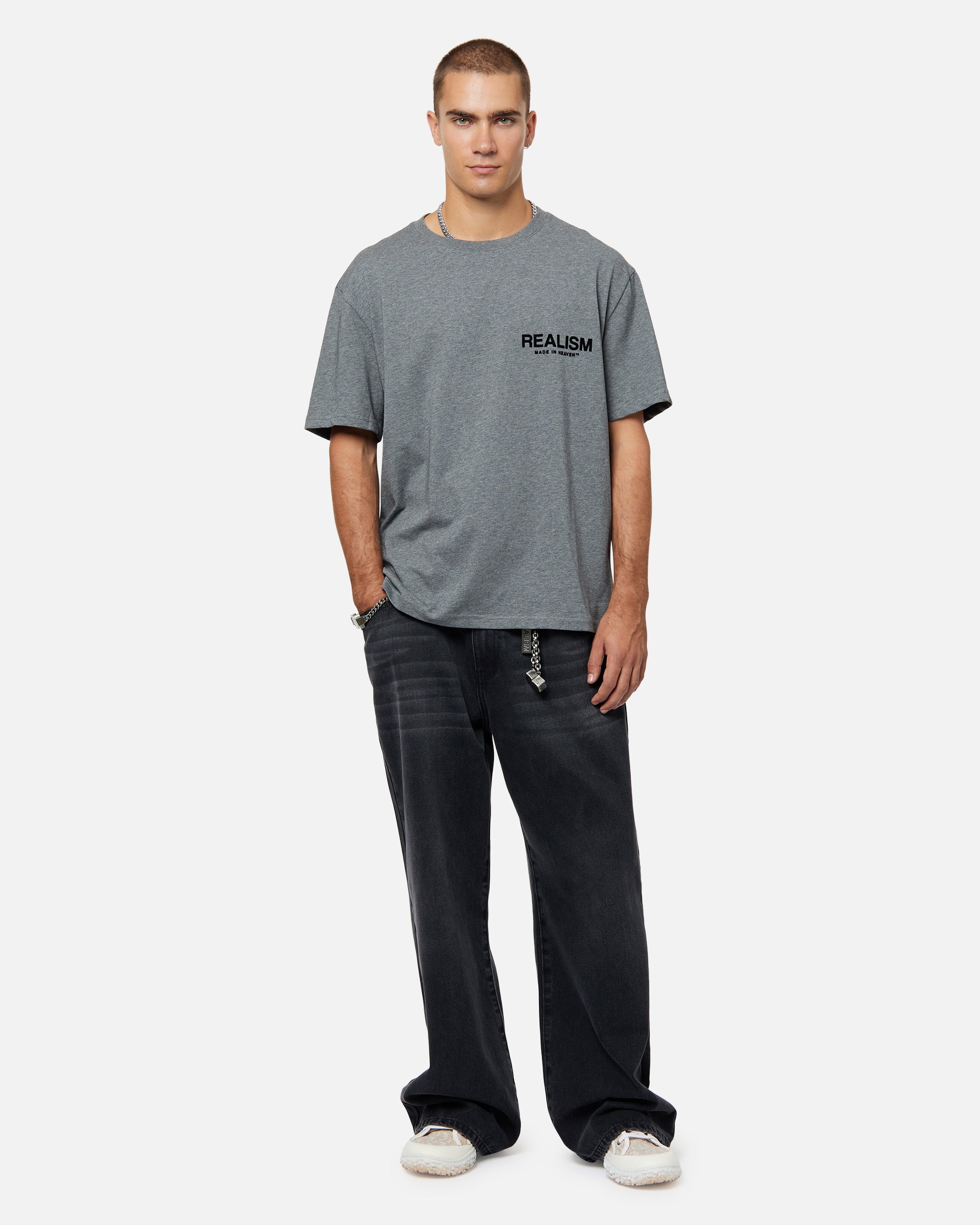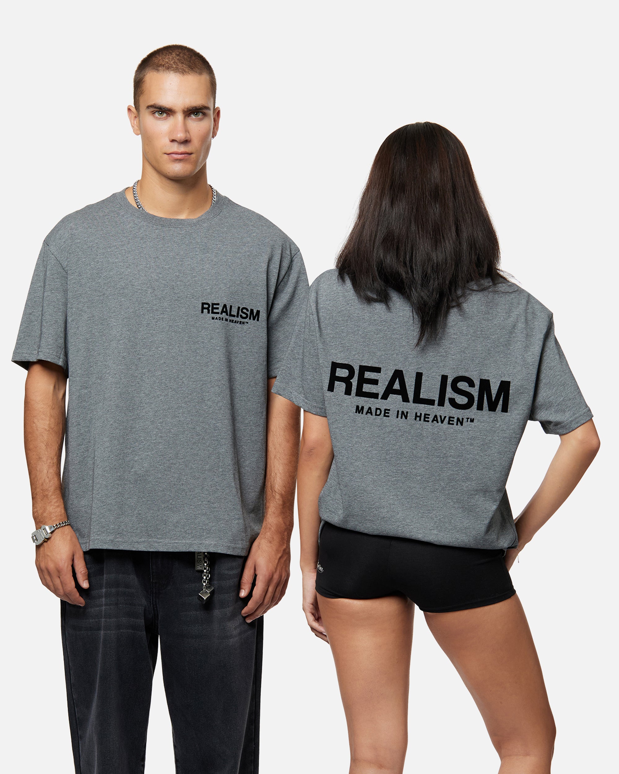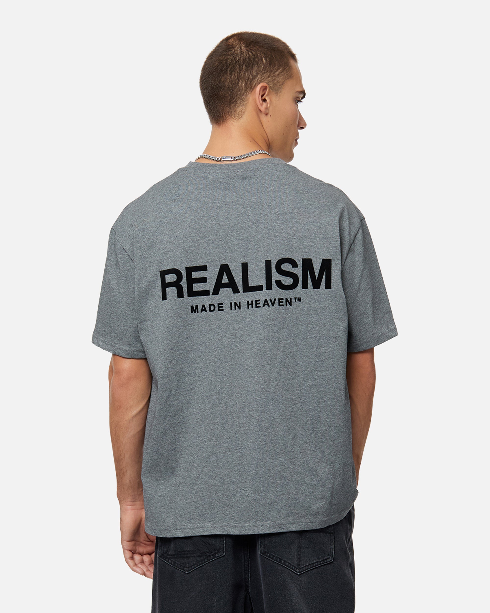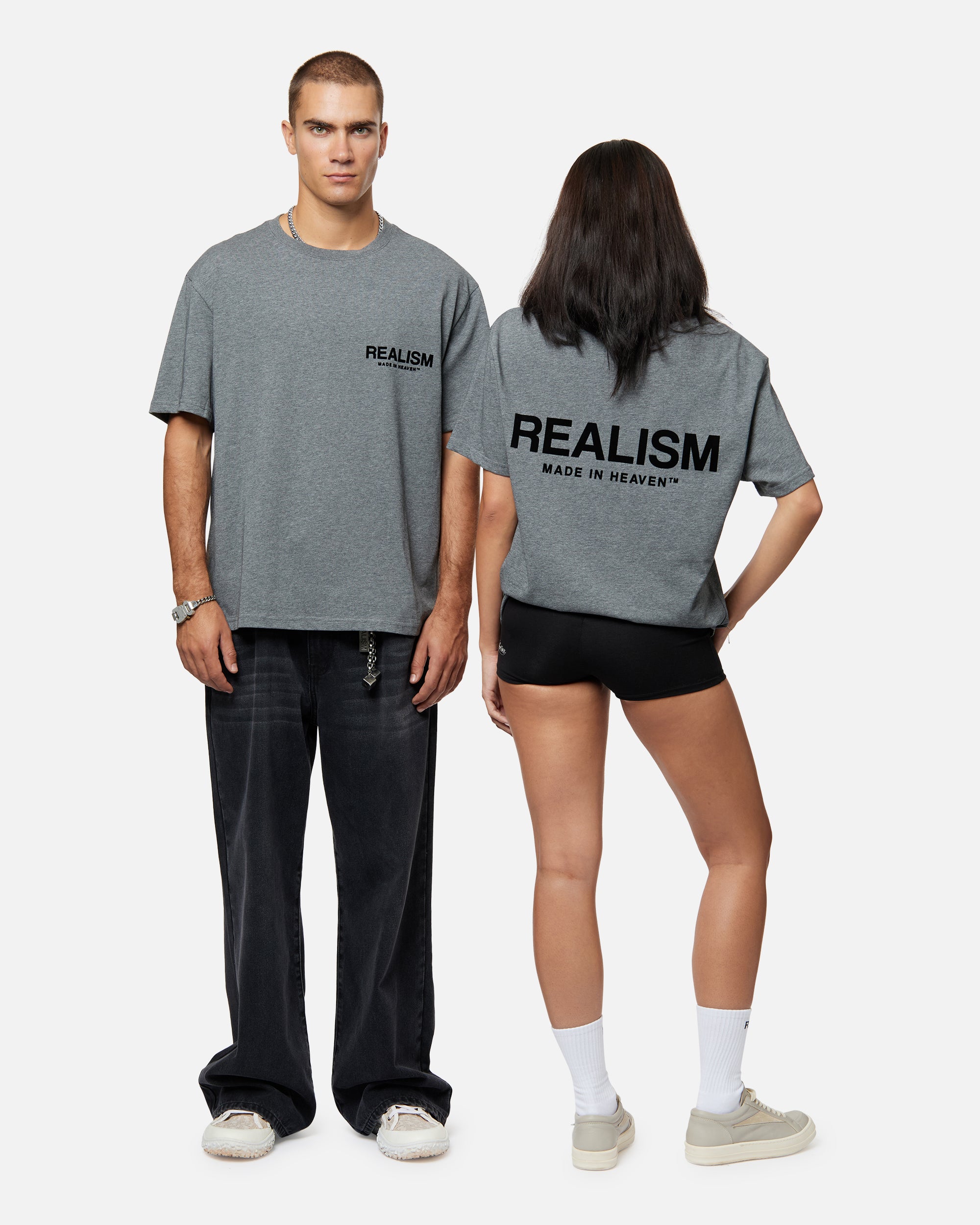 A summer-ready form of the classic Heaven Logo Hoodie. The Heaven Logo Tee features smooth flock applique logo adornments on the chest and back with a custom metal REALISM plaquette on the bottom hem to bring together the whole design. The perfect way to start any fit.