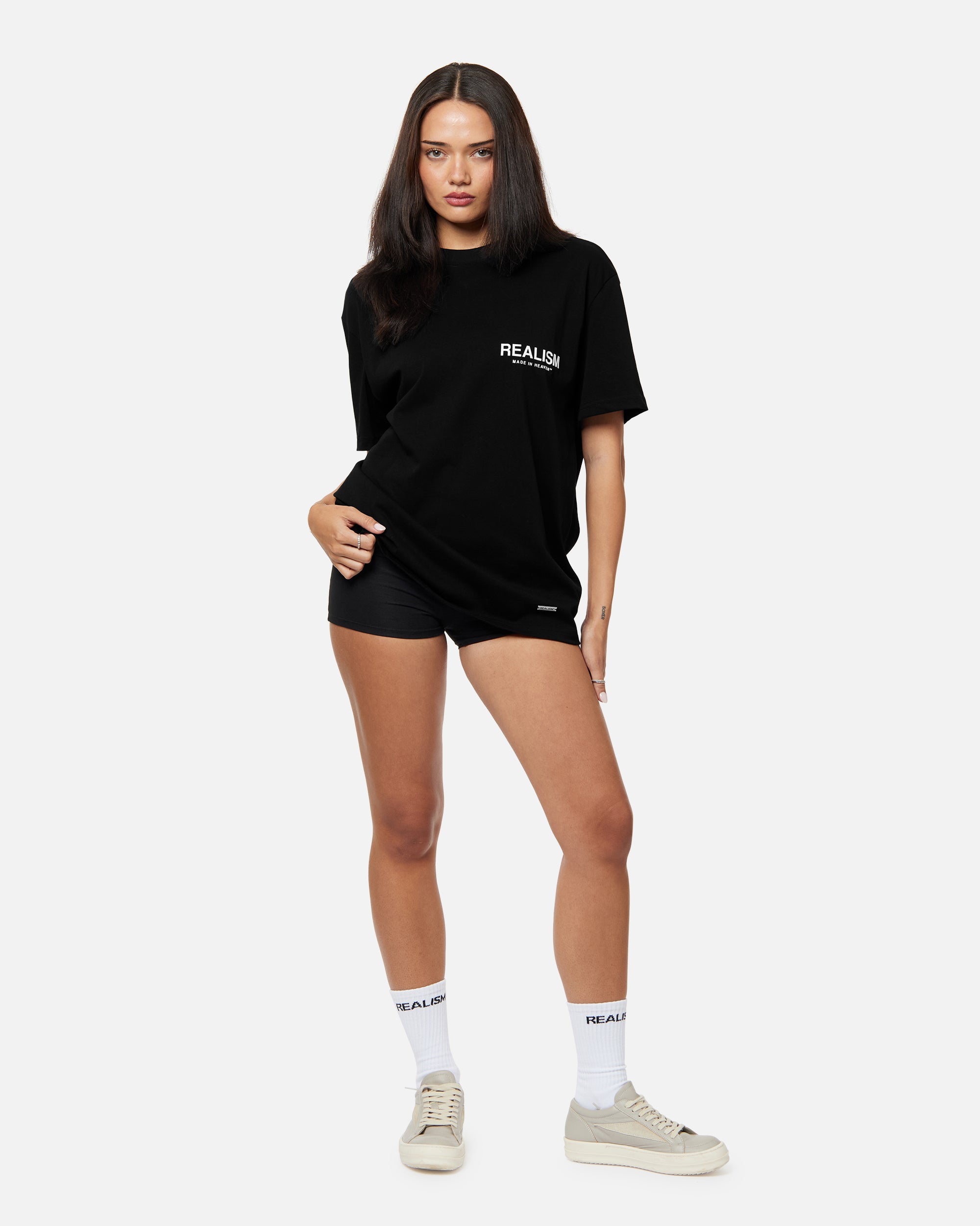 A summer-ready form of the classic Heaven Logo Hoodie. The Heaven Logo Tee features smooth 3D silicon applique logo adornments on the chest and back with a custom metal REALISM plaquette on the bottom hem to bring together the whole design. The perfect way to start any fit.