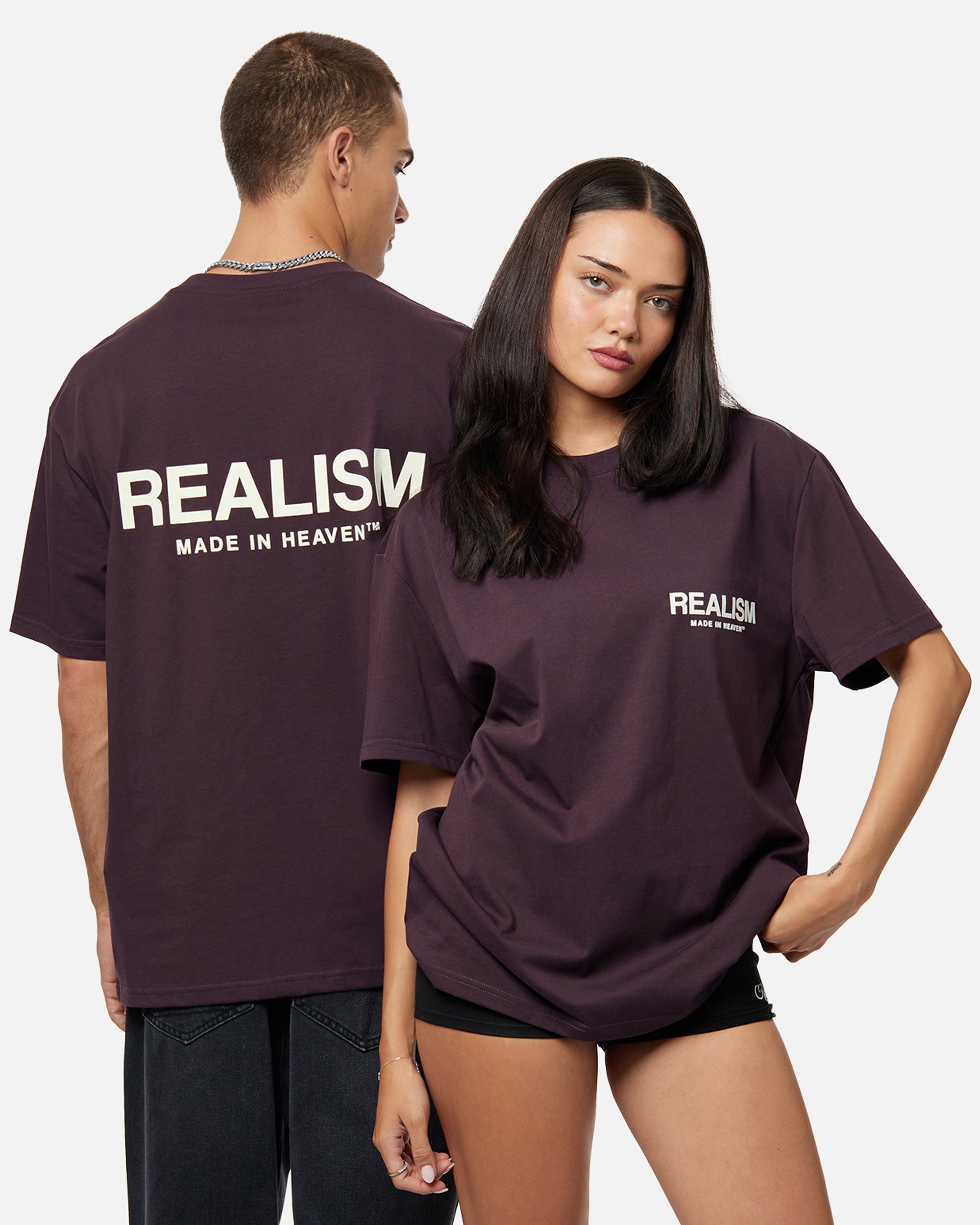 A summer-ready form of the classic Heaven Logo Hoodie. The Heaven Logo Tee features flock applique logo adornments on the chest and back with a custom metal REALISM plaquette on the bottom hem to bring together the whole design. The perfect way to start any fit.