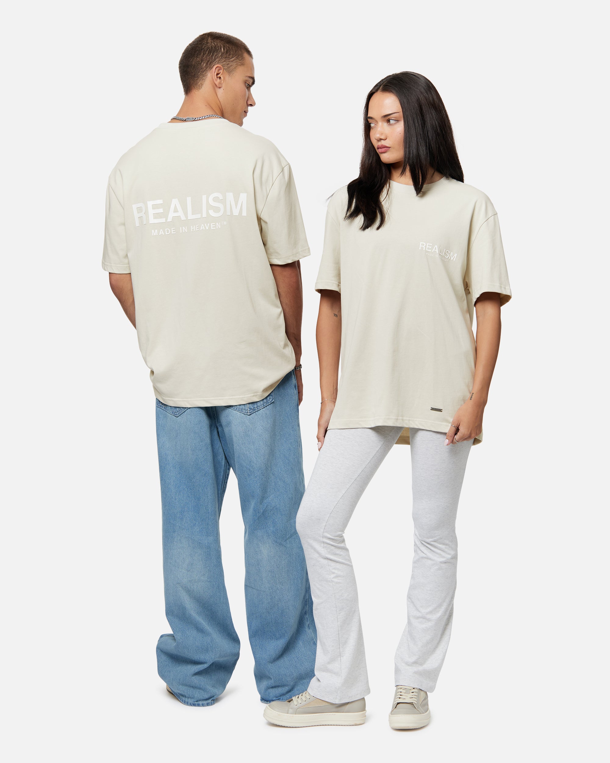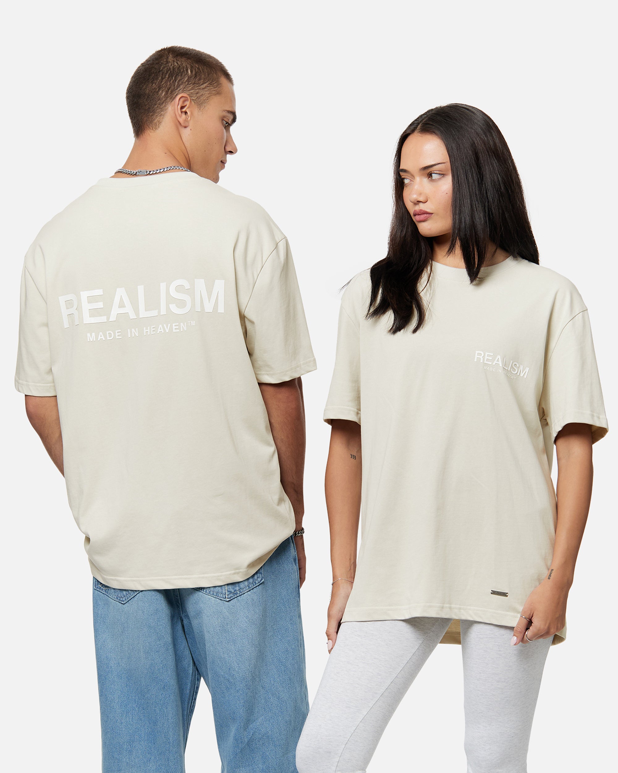 A summer-ready form of the classic Heaven Logo Hoodie. The Heaven Logo Tee features smooth 3D silicon applique logo adornments on the chest and back with a custom metal REALISM plaquette on the bottom hem to bring together the whole design. The perfect way to start any fit.