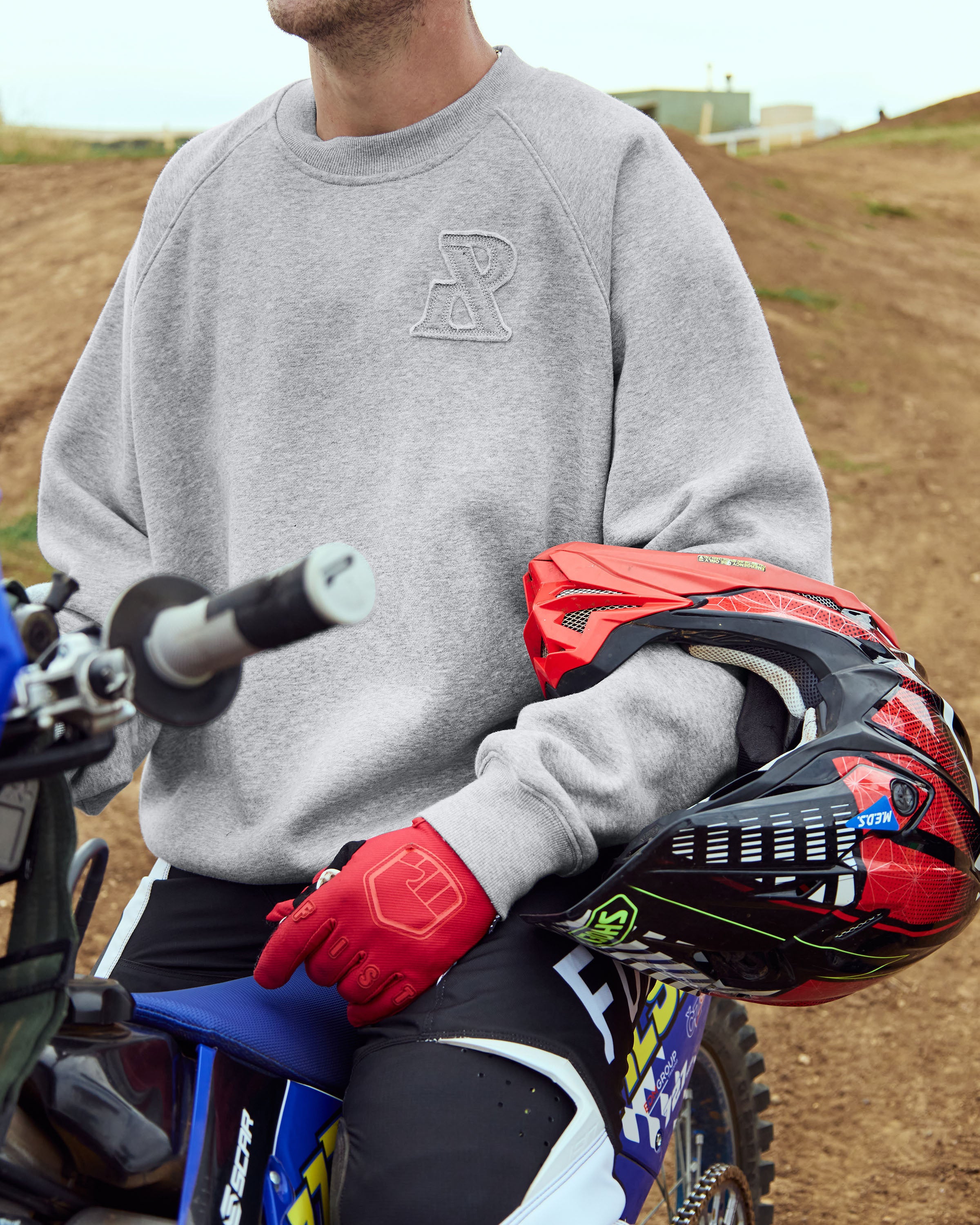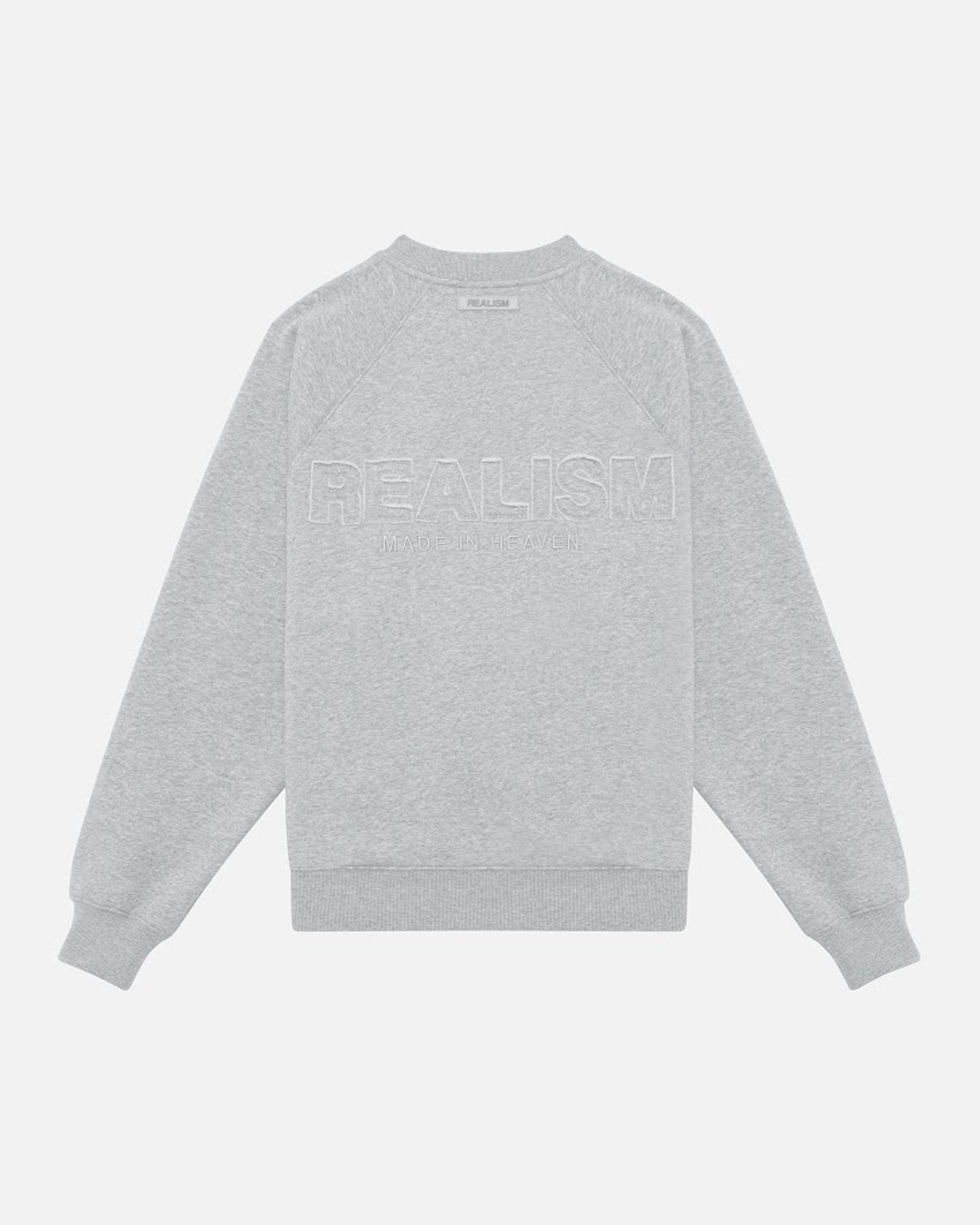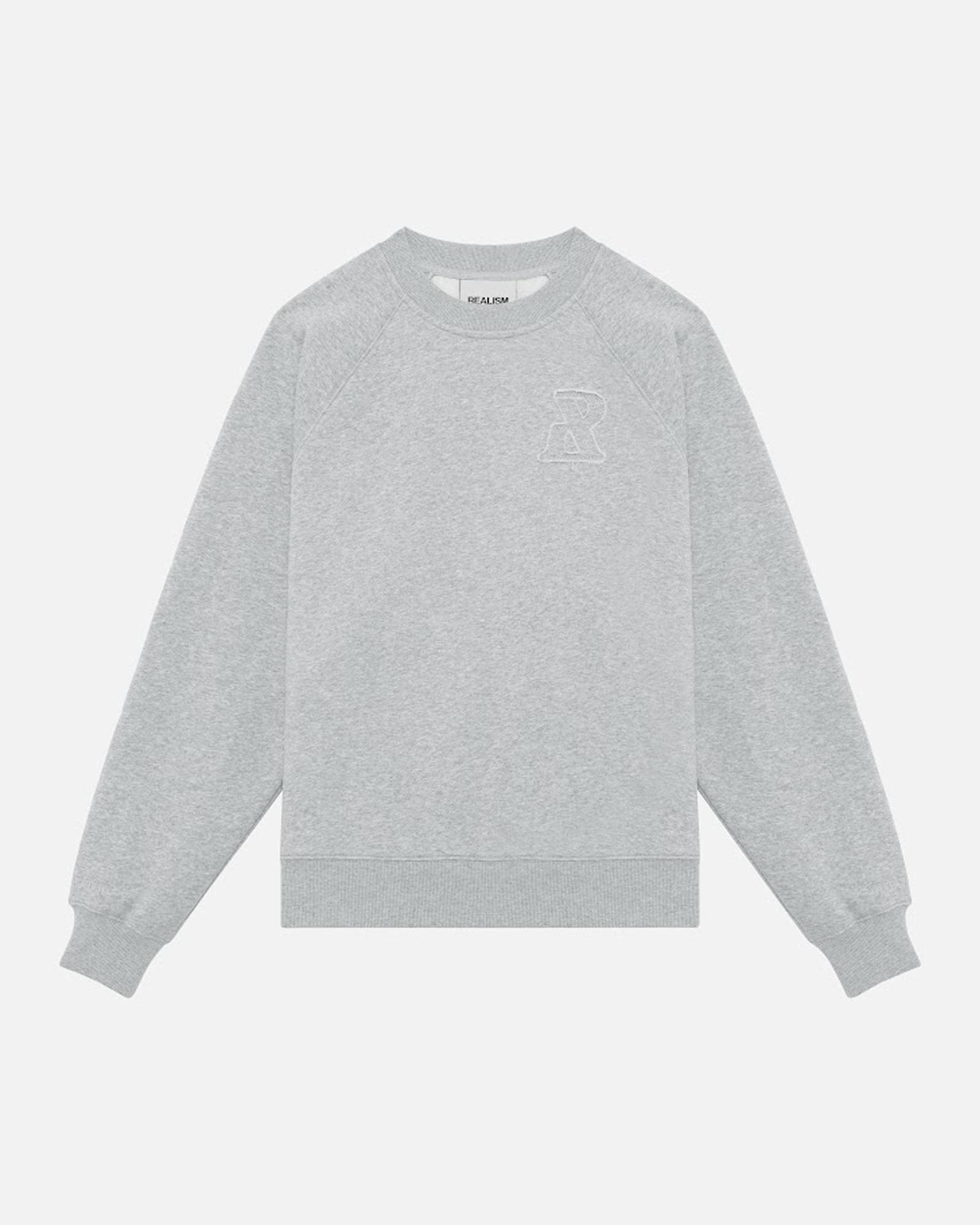 The Legacy Series represents the next evolution of Realism's design identity. Made with Realism's signature fleece in a Grey Marle guise. This crewneck features distressed patch work including the “R” on chest and “REALISM” on back. Custom metal accents and a silicon applique logo on the neckline help bring together the design.