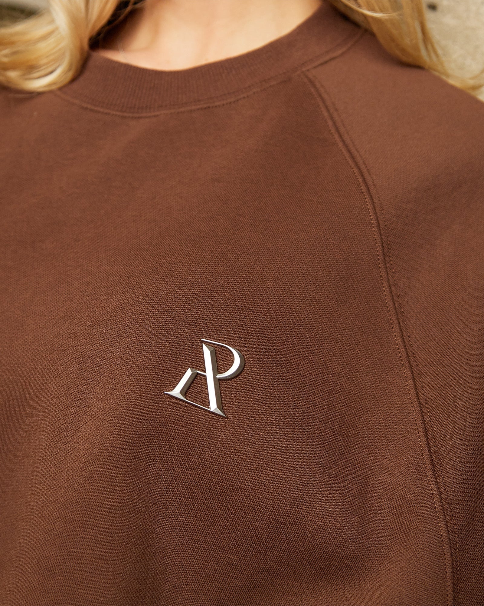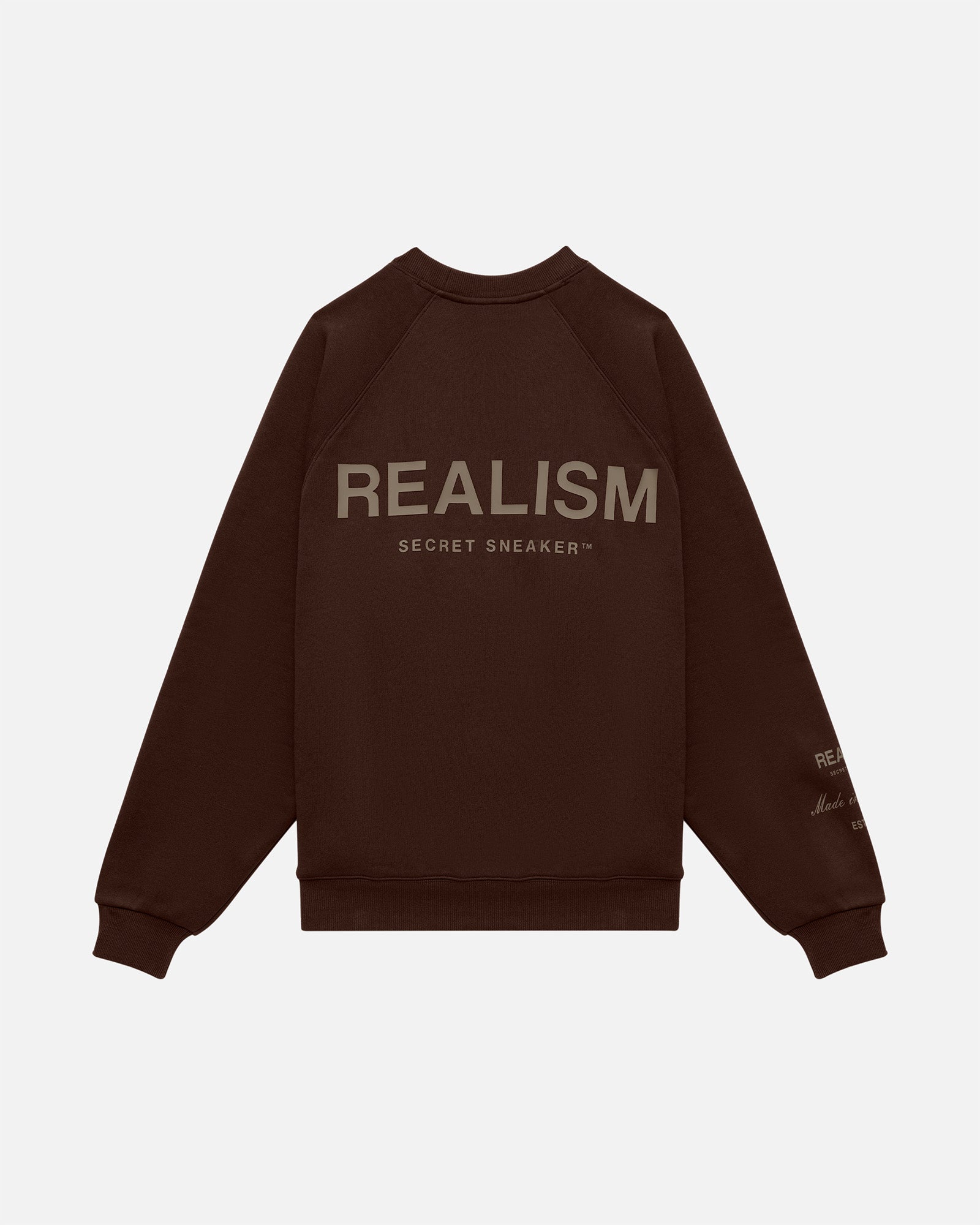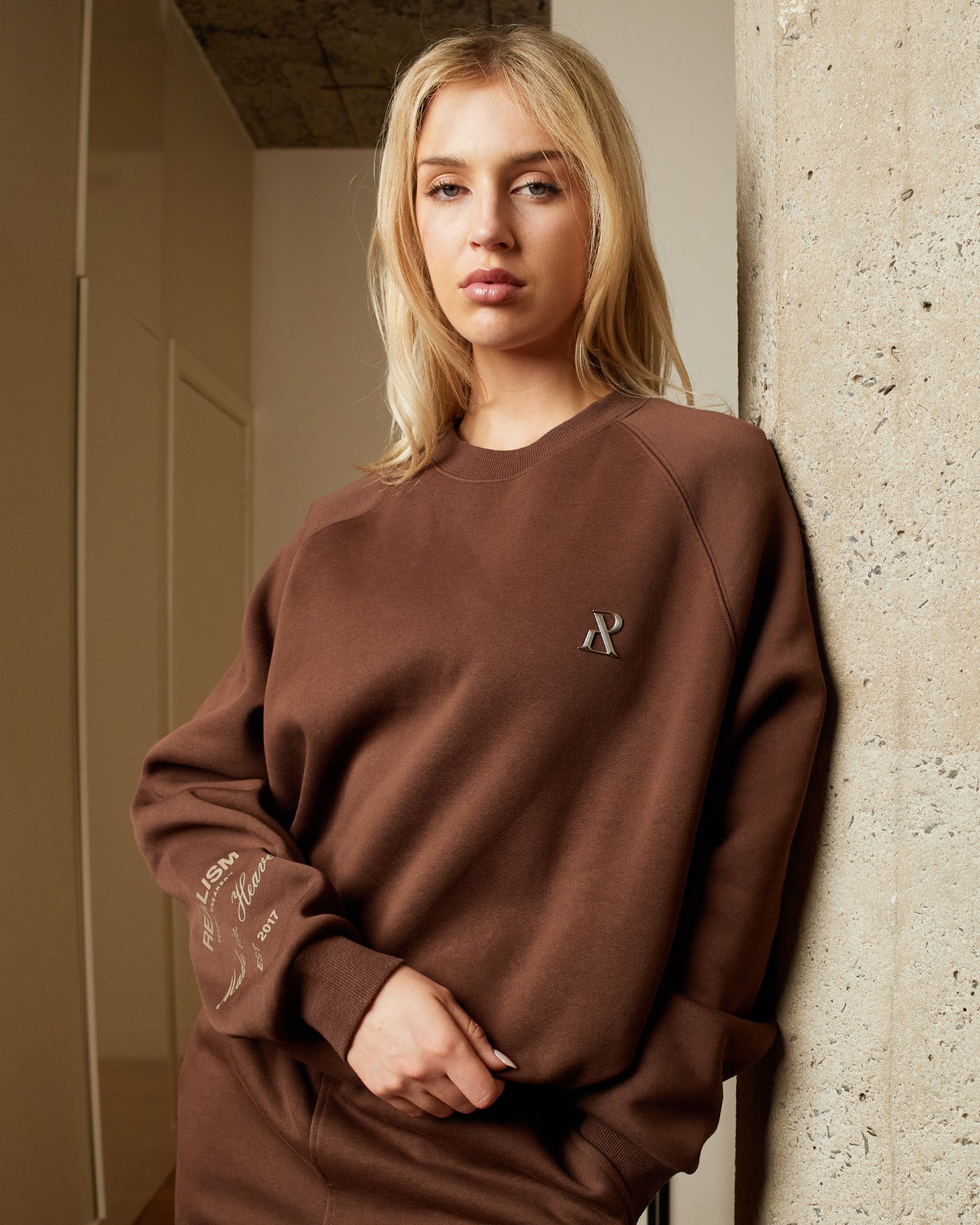 The classic crewneck silhouette is refreshed with a deluxe signature from our Radiant collection. Made with our signature comfy fleece in a oversized Mocha guise, this crewneck features metal accents including a custom "R" branded chest emblem and tag. A sleeve and centre back print ties together the design.