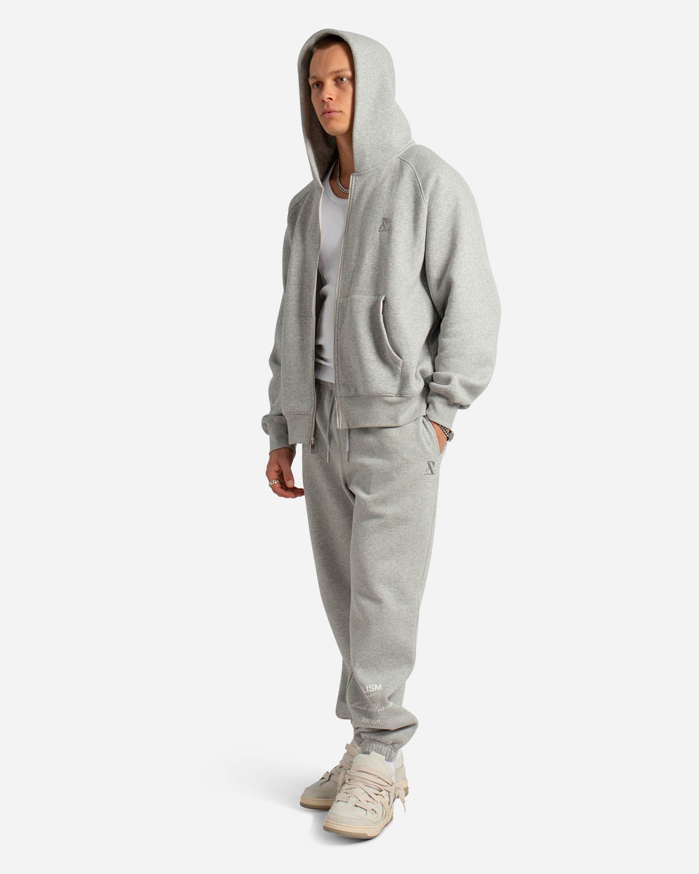 This classic silhouette is refreshed with a deluxe signature from the Realism Radiant collection. Made with Realism's signature comfy fleece in a relaxed Marle Grey guise, this sweatpant features metal accents including custom "R" branded drawstring openings & aglets, thigh emblem and tag. An embroidered "R" on the back pocket and shin print ties together a design that captures the essence of premium loungewear.