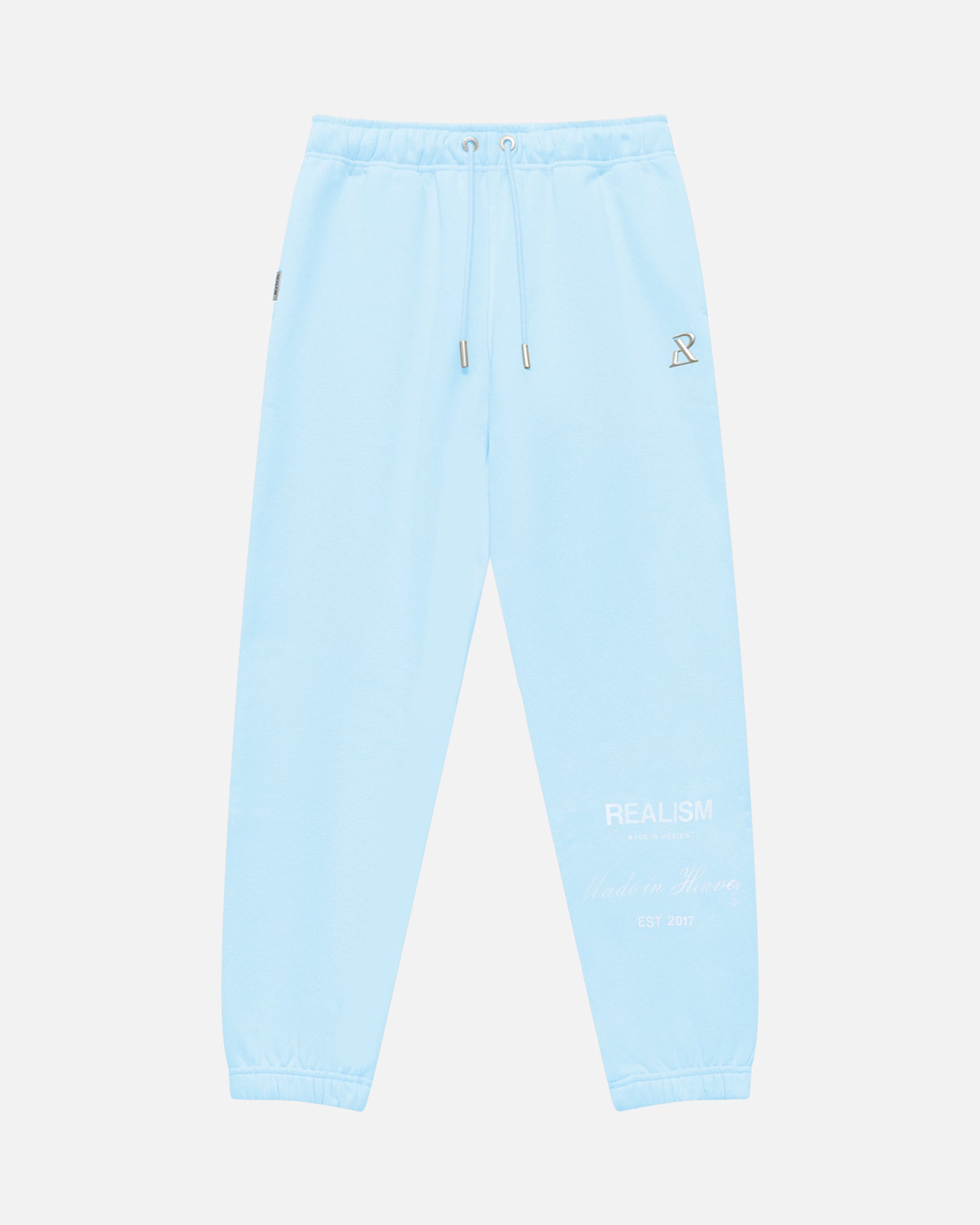 This classic silhouette is refreshed with a deluxe signature from the Realism Radiant collection. Made with Realism's signature comfy fleece in a relaxed Sky Dust guise, this sweatpant features metal accents including custom "R" branded drawstring openings & aglets, thigh emblem and tag. An embroidered "R" on the back pocket and shin print ties together a design that captures the essence of premium loungewear.
