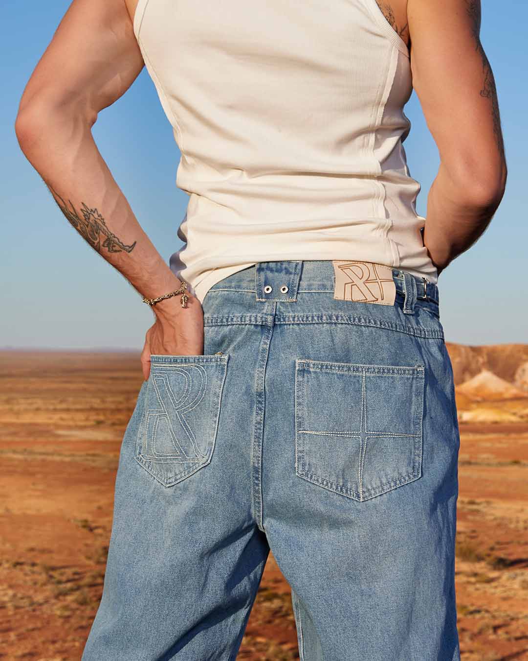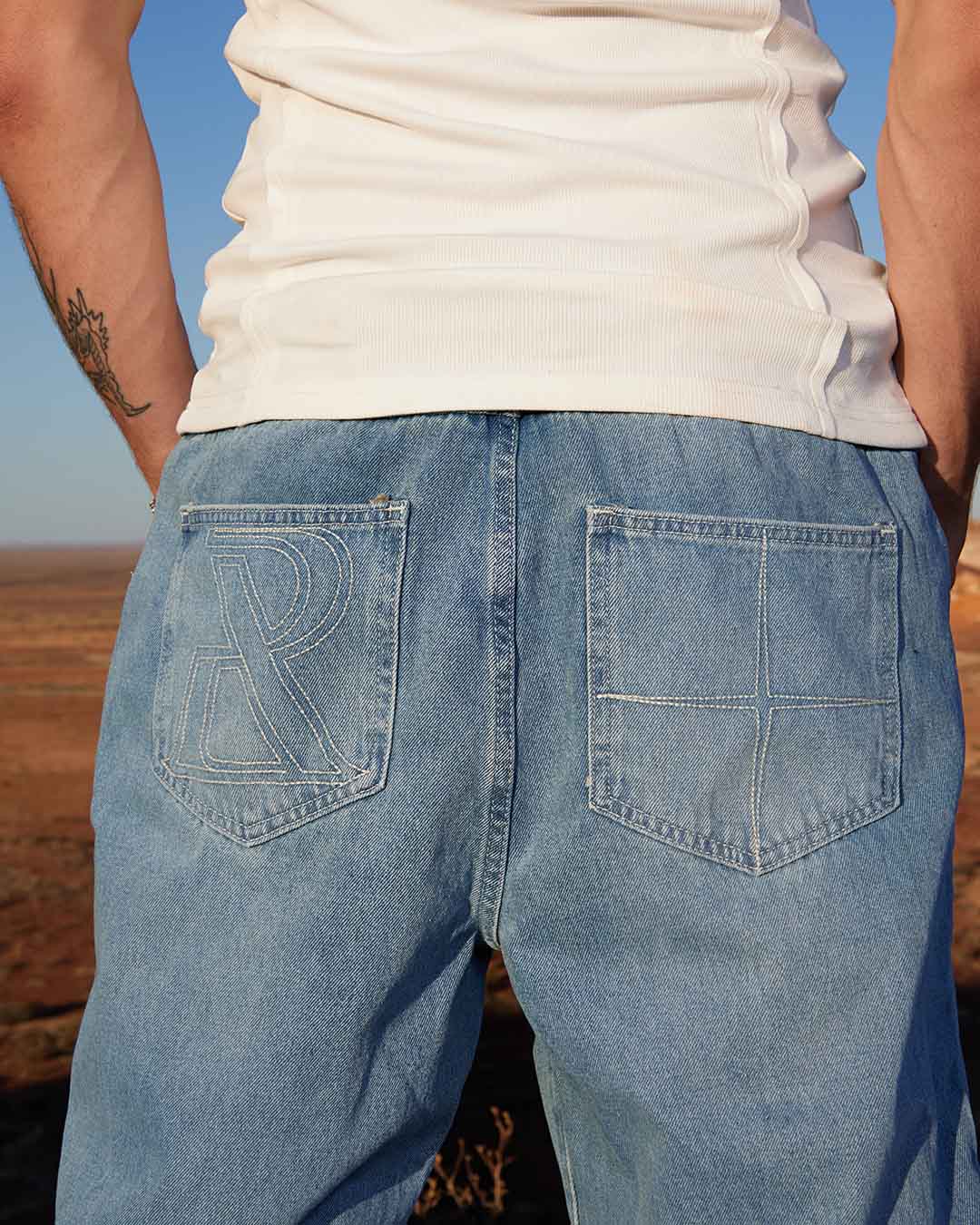 - Angled back pockets with custom double stitched "R" and Star embroidery