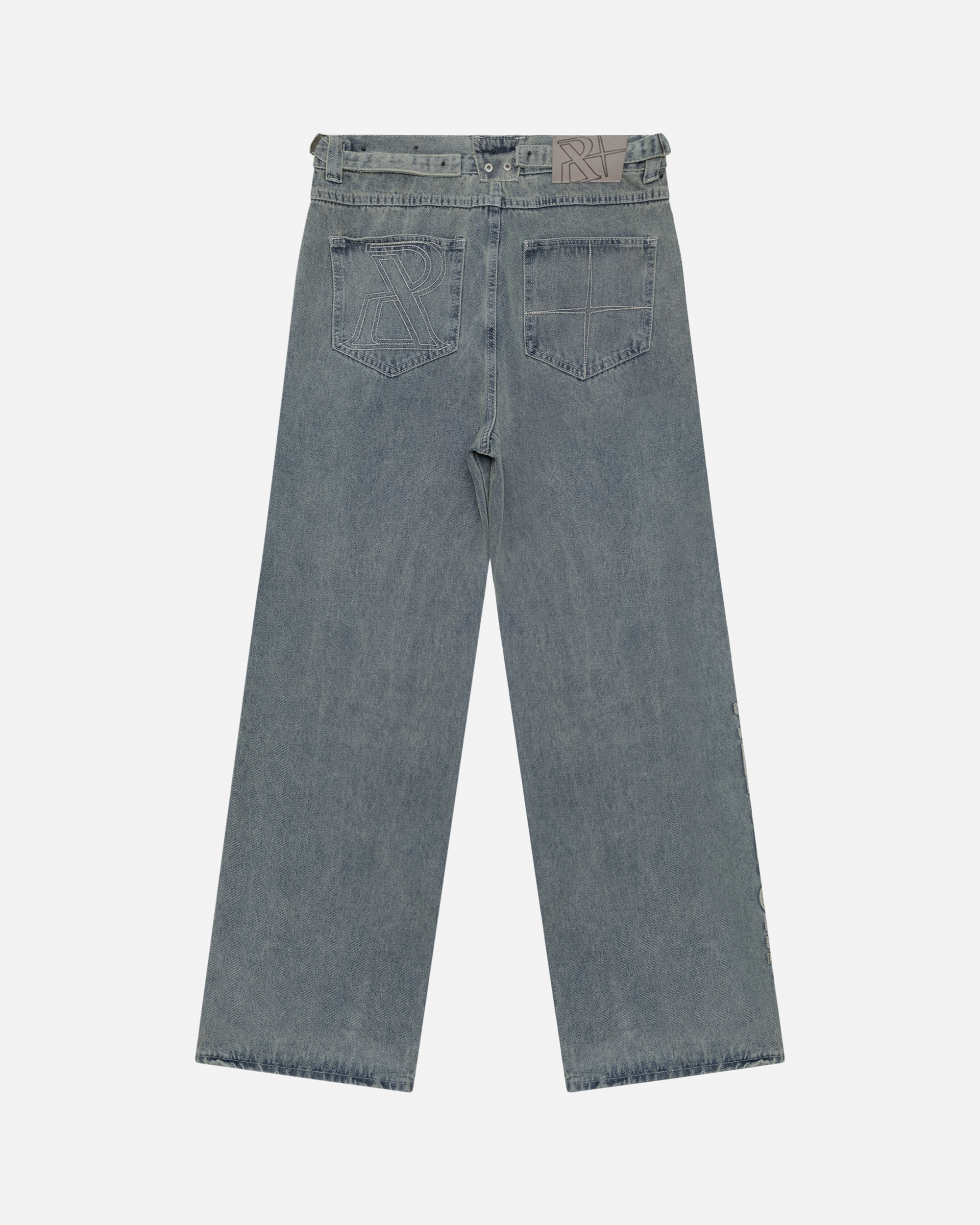 - Angled back pockets with custom double stitched "R" and Star embroidery