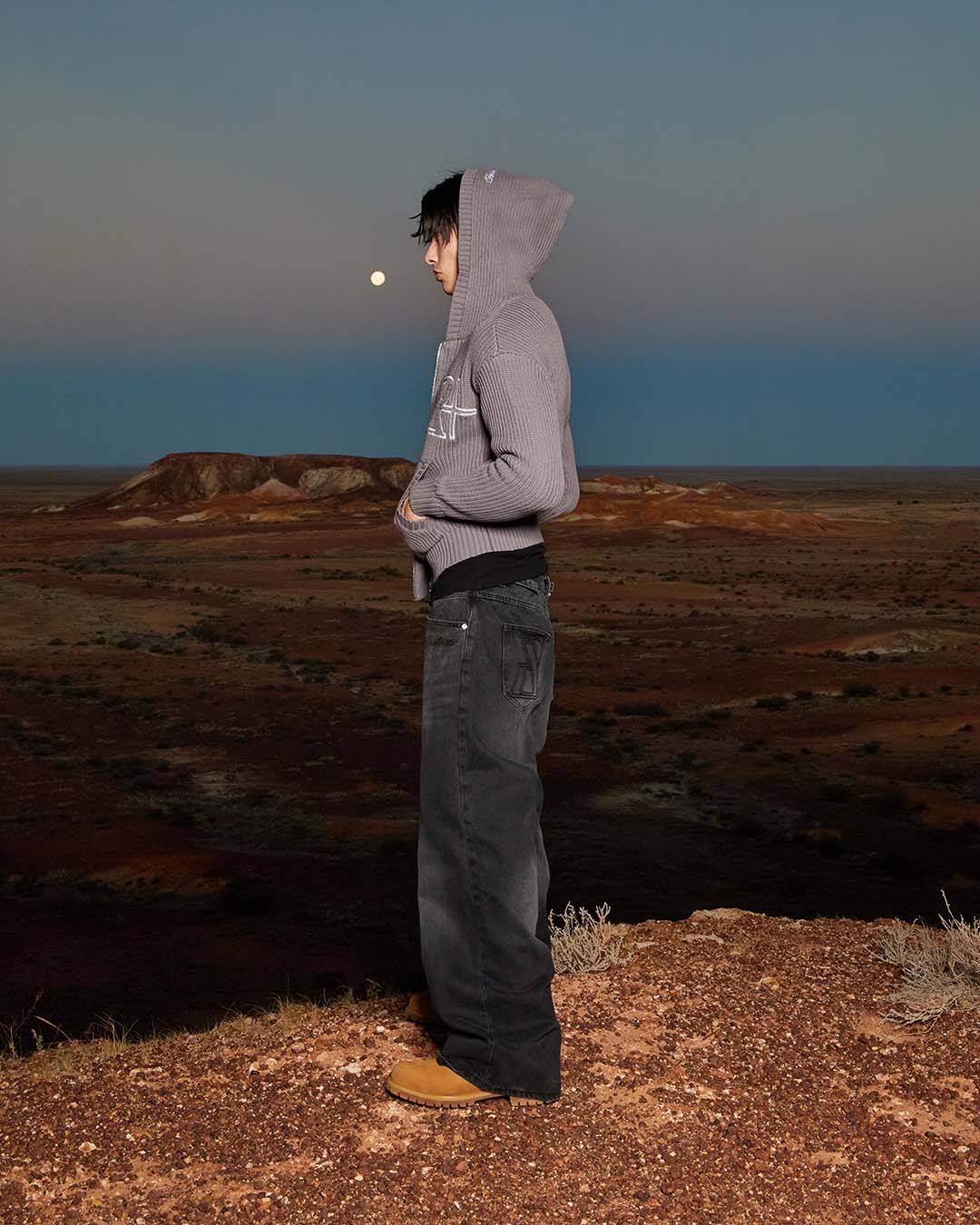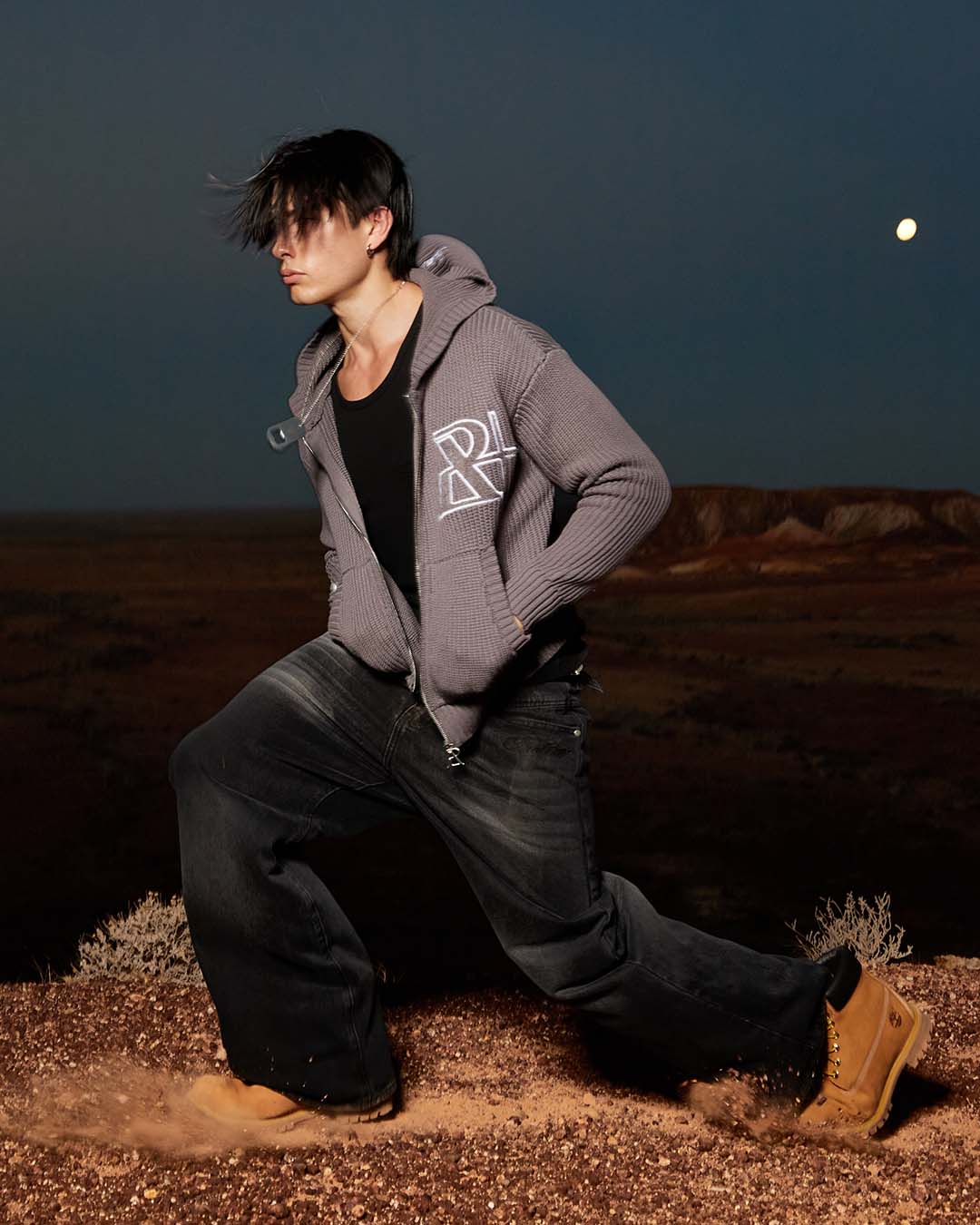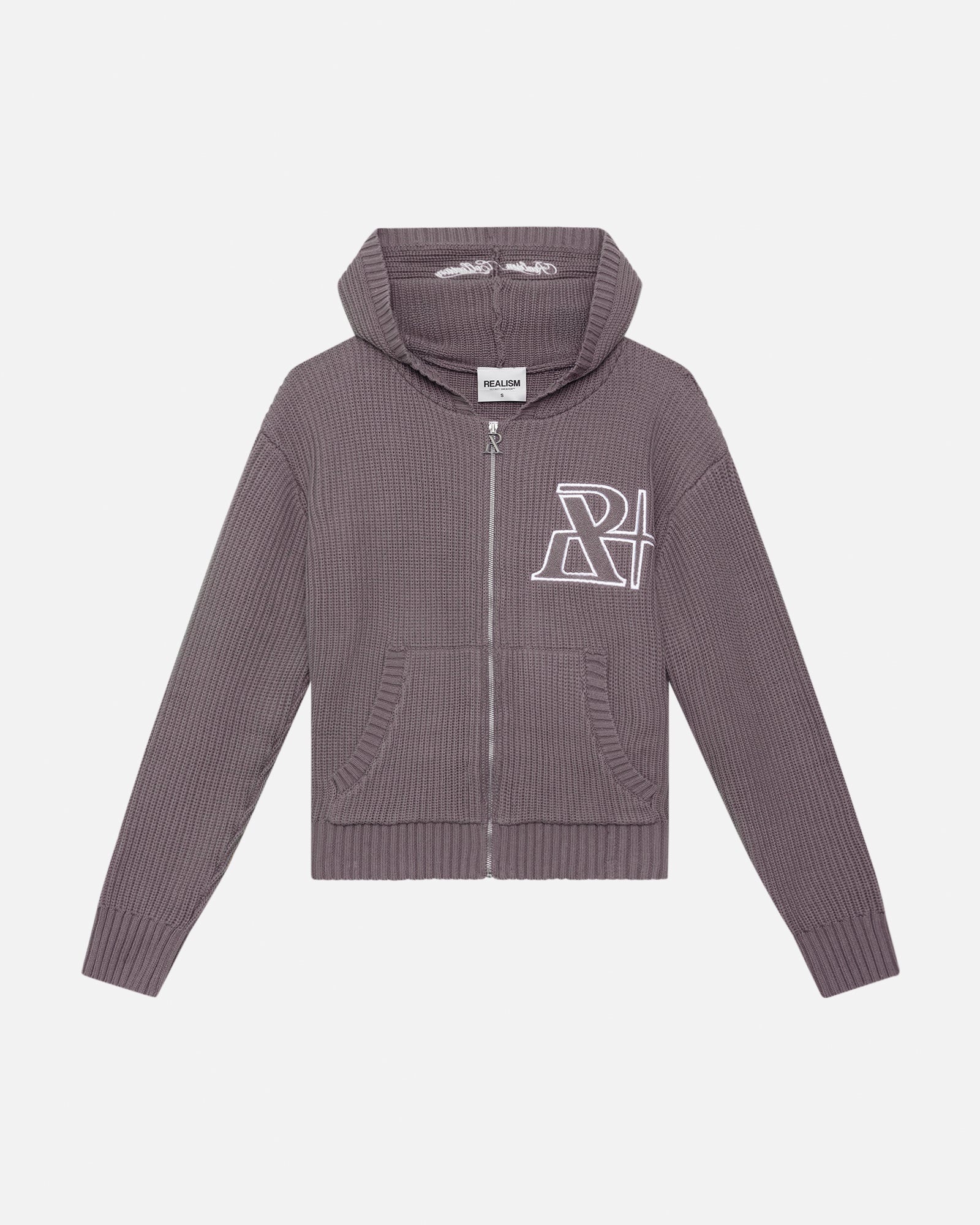 VIVANT KNIT ZIP HOODIE CHARCOAL